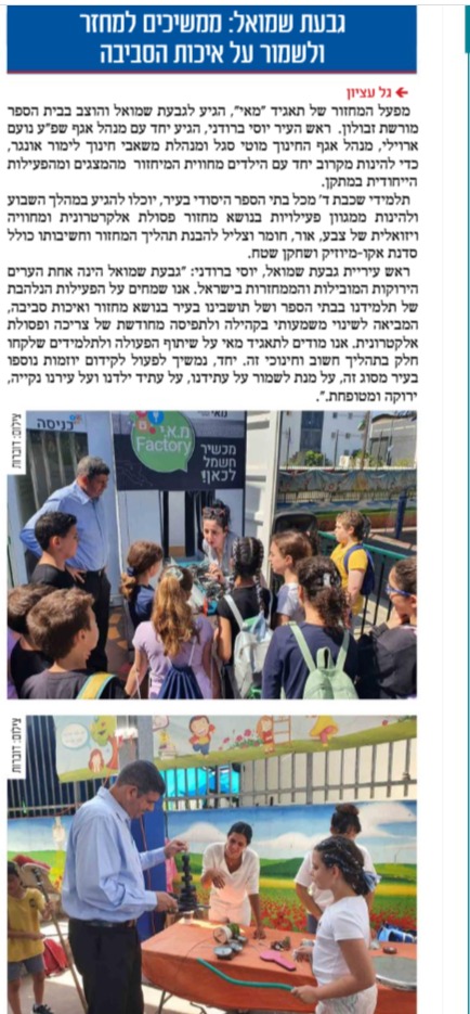 חדשות נתניה – פעילות איסוף פסולת אלקטרונית משותפת של תאגיד מ.א.י עם בני המושבים קדימה צורן
