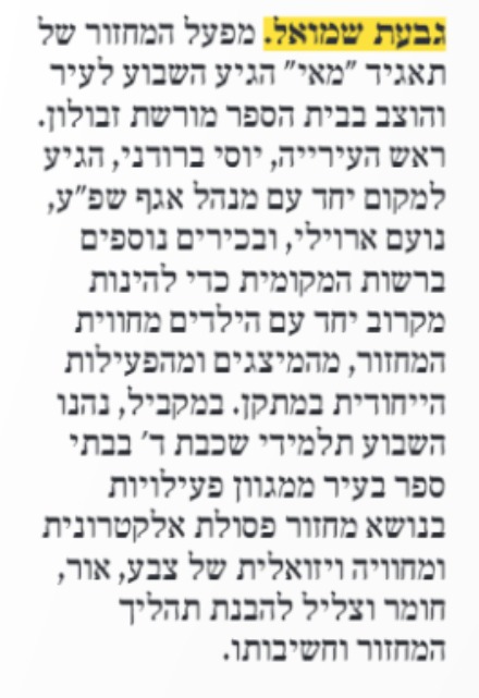 העיתון שמחבר – 471' – מאי פקטורי בגבעת שמואל