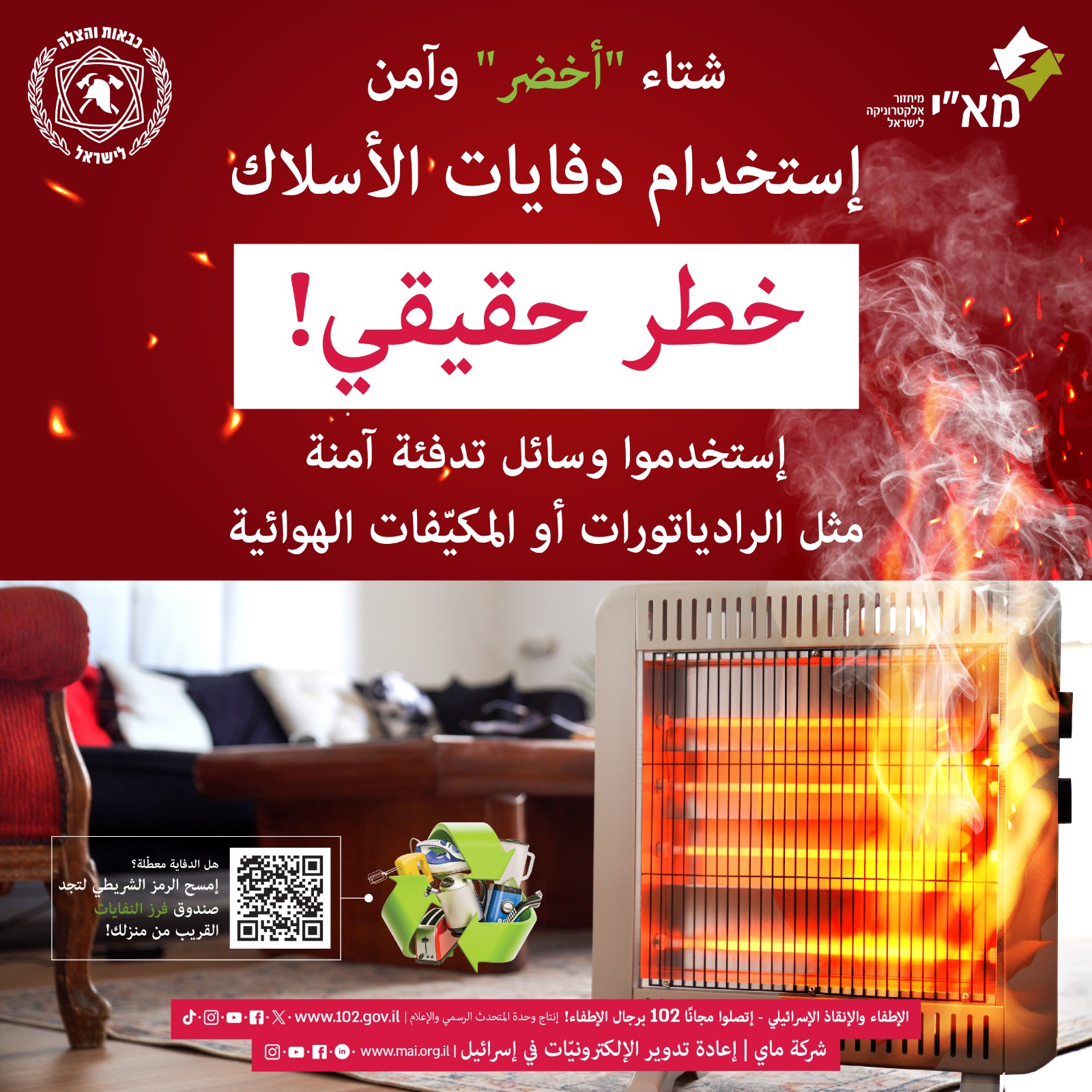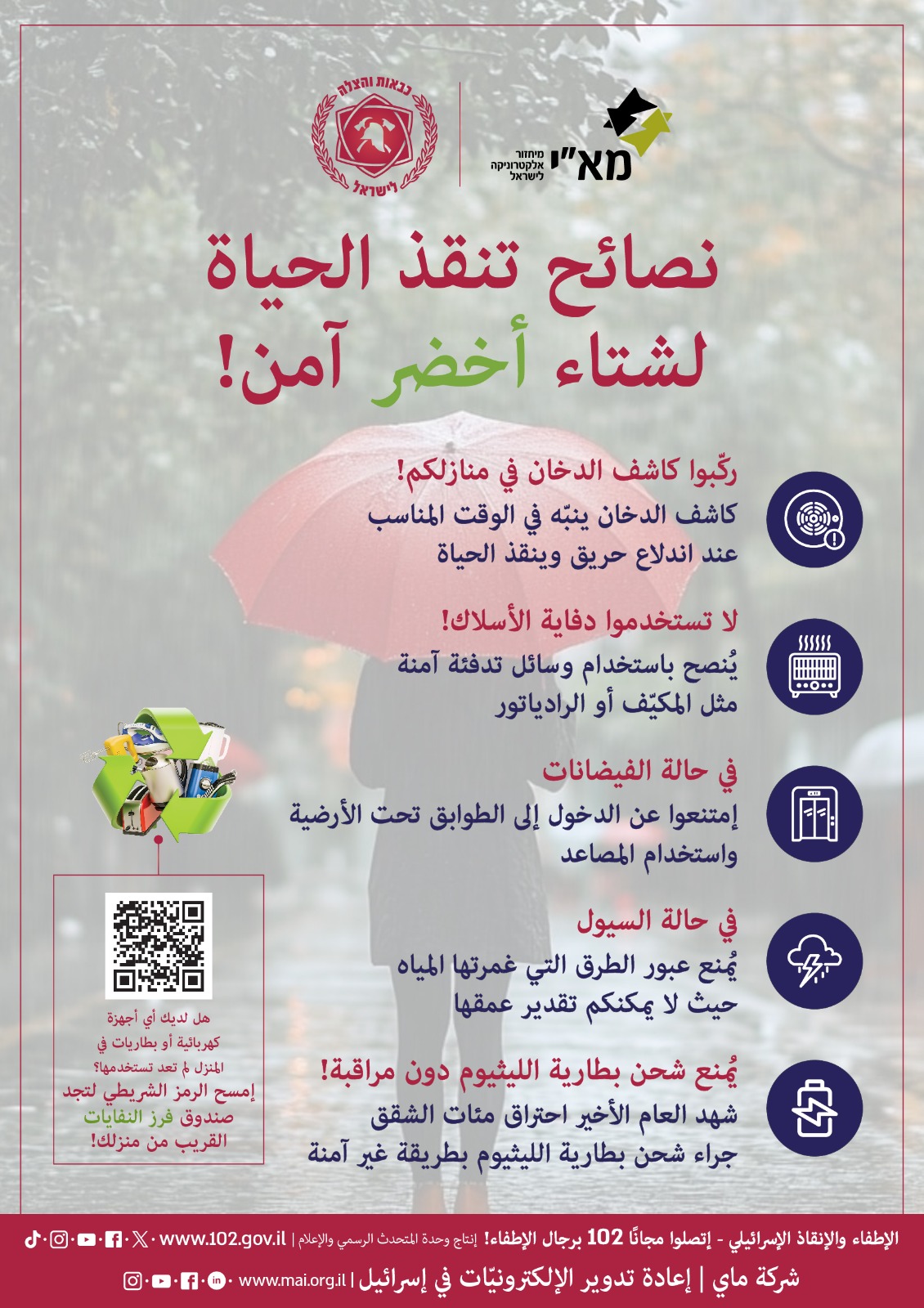 חשוב לפעול לפי הנחיות הבטיחות של כבאות והצלה לישראל על מנת לשמור על החיים ועל הרכוש: