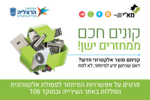 מוזמנים לחפש בביתכם את המוצרים האלקטרונים שכבר לא עובדים ולשחרר אותם הלאה למיחזור.